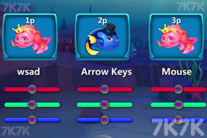 游戏操作十分简单。玩家使用方向键控制小鱼的游动方向,靠近比自己小的鱼时,按下攻击键就能将其吃掉。在多人对战中,灵活运用方向键躲避敌人,抓住时机进攻,就能轻松享受游戏。