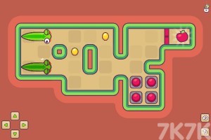 游戏中,我们需要控制小青蛇获取途中的食物延伸自己利用机关成功得到苹果即可过关