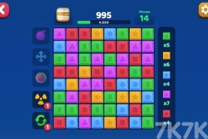一款对对碰游戏,游戏内你可以随意滑动整行或者整列的方块,当相同颜色的方块凑成三个以上就能消除它们,一次消除更多的方块还会触发特殊的效果,快来挑战一下吧。